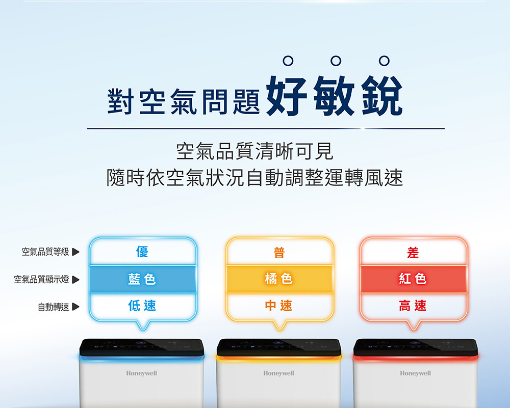 ◎空氣品質監測:有 (TVOC+PM2.5);三段顯示燈(紅、黃、藍)