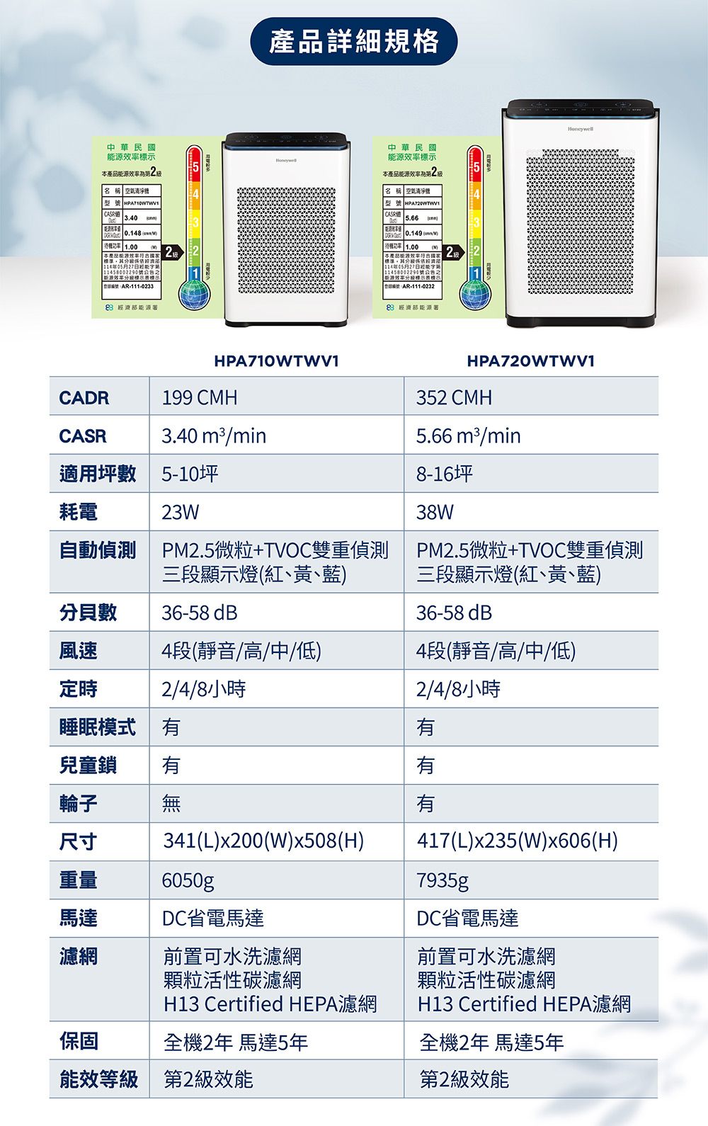 【一年份濾網組】【效率等級2】美國Honeywell 抗敏負離子空氣清淨機HPA710WTWV1(適用5-10坪|小敏)
