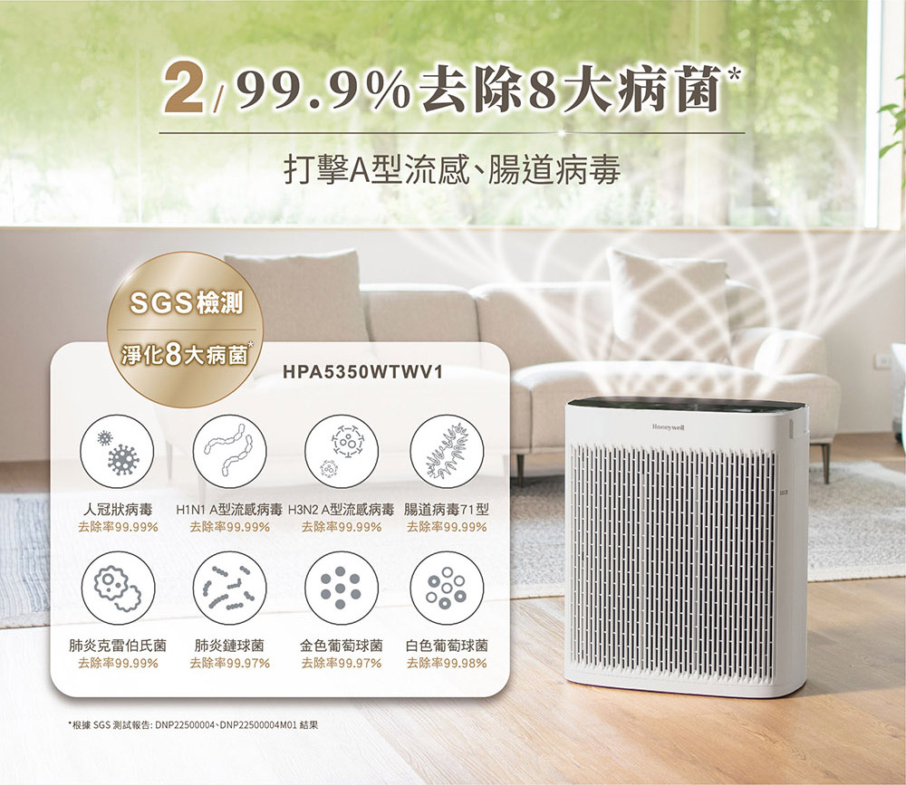【一年份濾網組】美國Honeywell 淨味空氣清淨機 HPA5350WTWV1 (適用14-28坪|小淨)