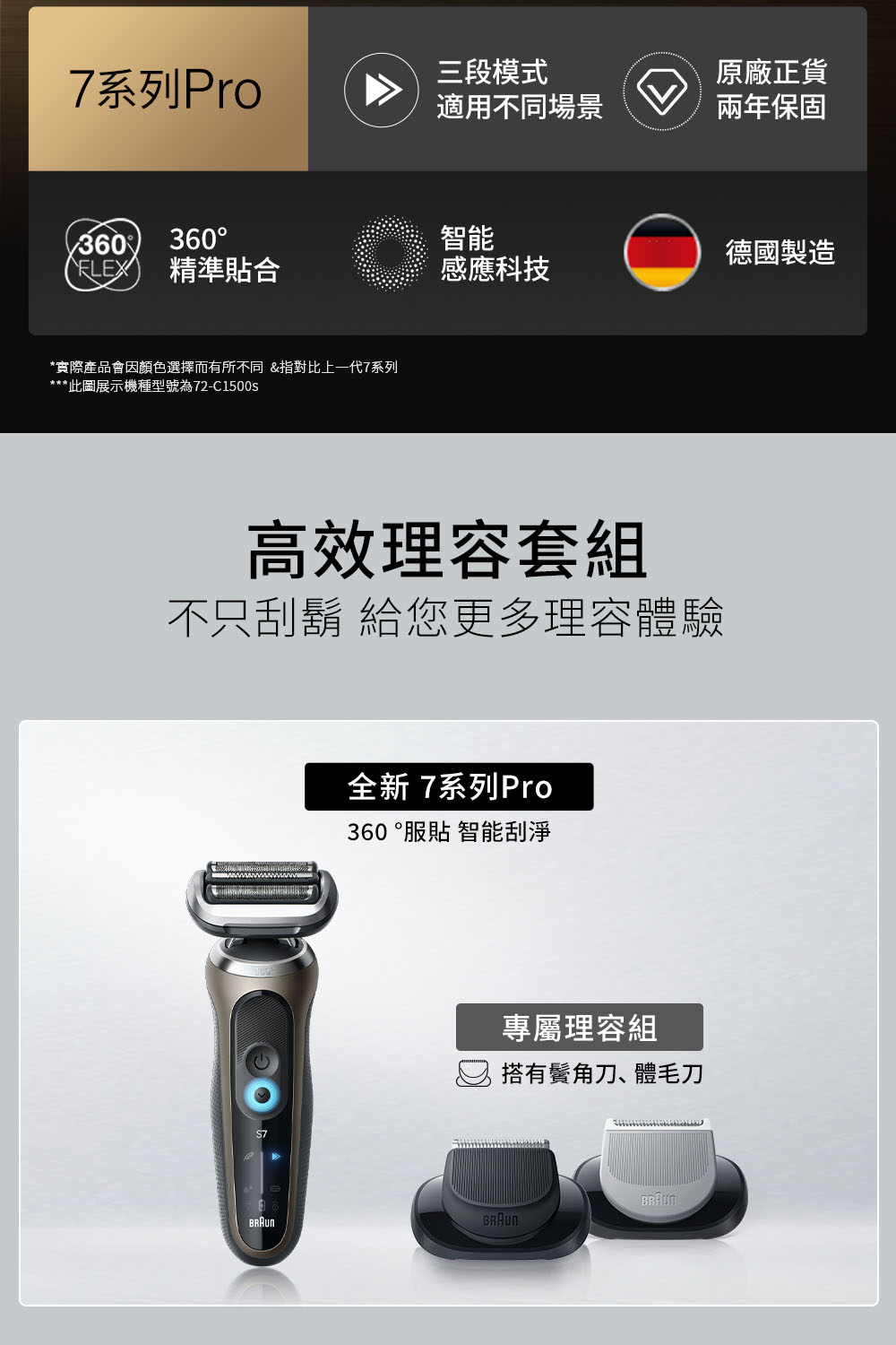 品名:BRAUN 7系Pro暢型貼面電鬍刀 72-C1500s