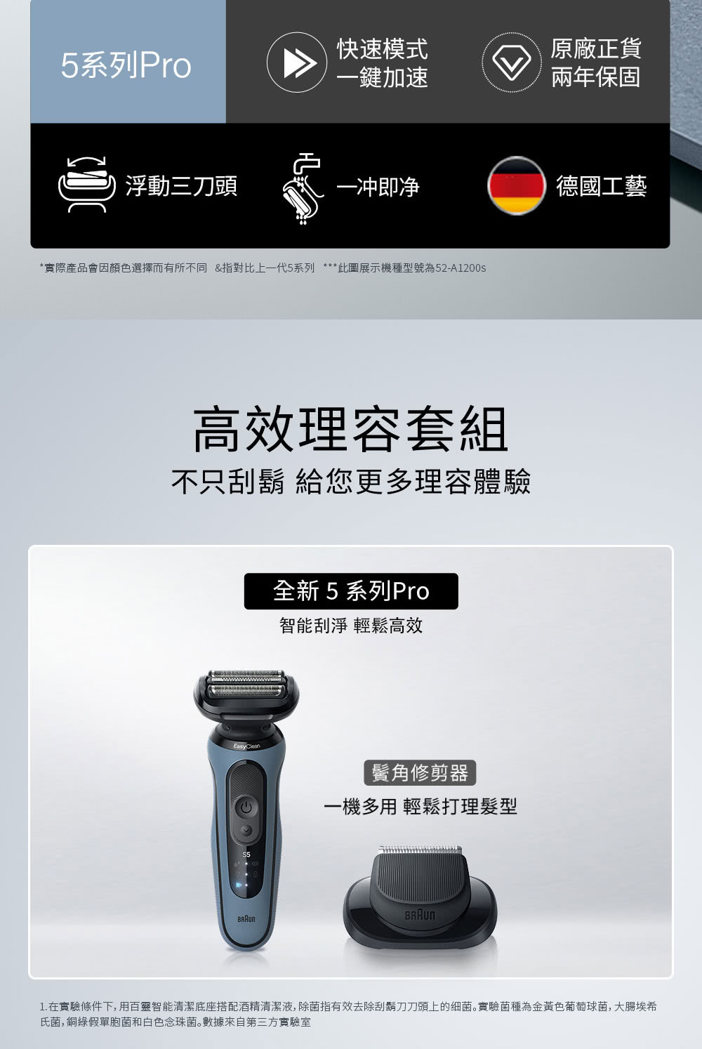 品名:BRAUN 5系Pro免拆快洗電鬍刀 52-M1200s
