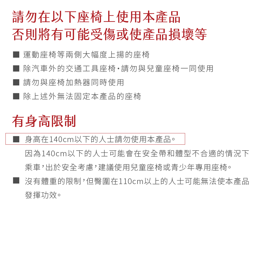 提高本產品性能,可能變更部分規格,恕不另行通知。 本產品在製造過程中,可能會出現皺痕、線痕或凹陷等, 這些都屬於正常現象。 圖片只供參考,產品的實際顏色與照片可能有所偏差。 臀圍超過110cm的人士使用,可能無法達到產品原有功效。 (非屬品質問題。)