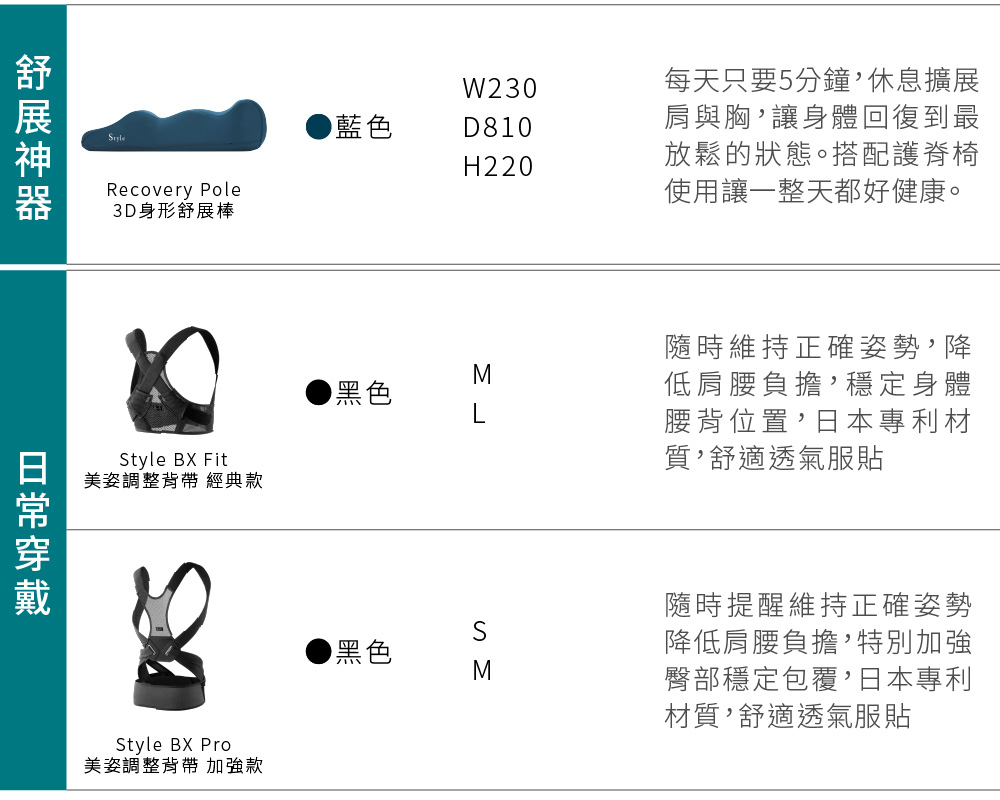 -獨家三點支撐技術,輕鬆維持S型姿勢