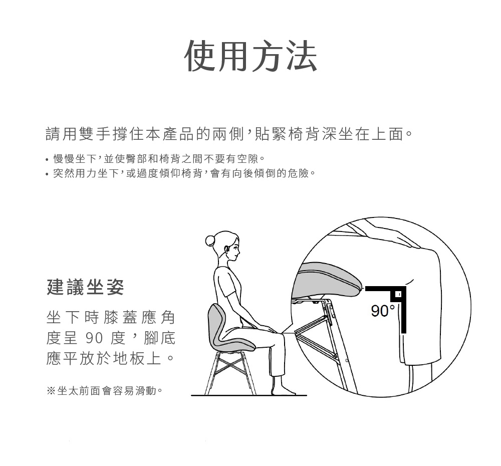 -自然前傾的座面設計,讓臀部自然立起,輕鬆坐在正確位置
