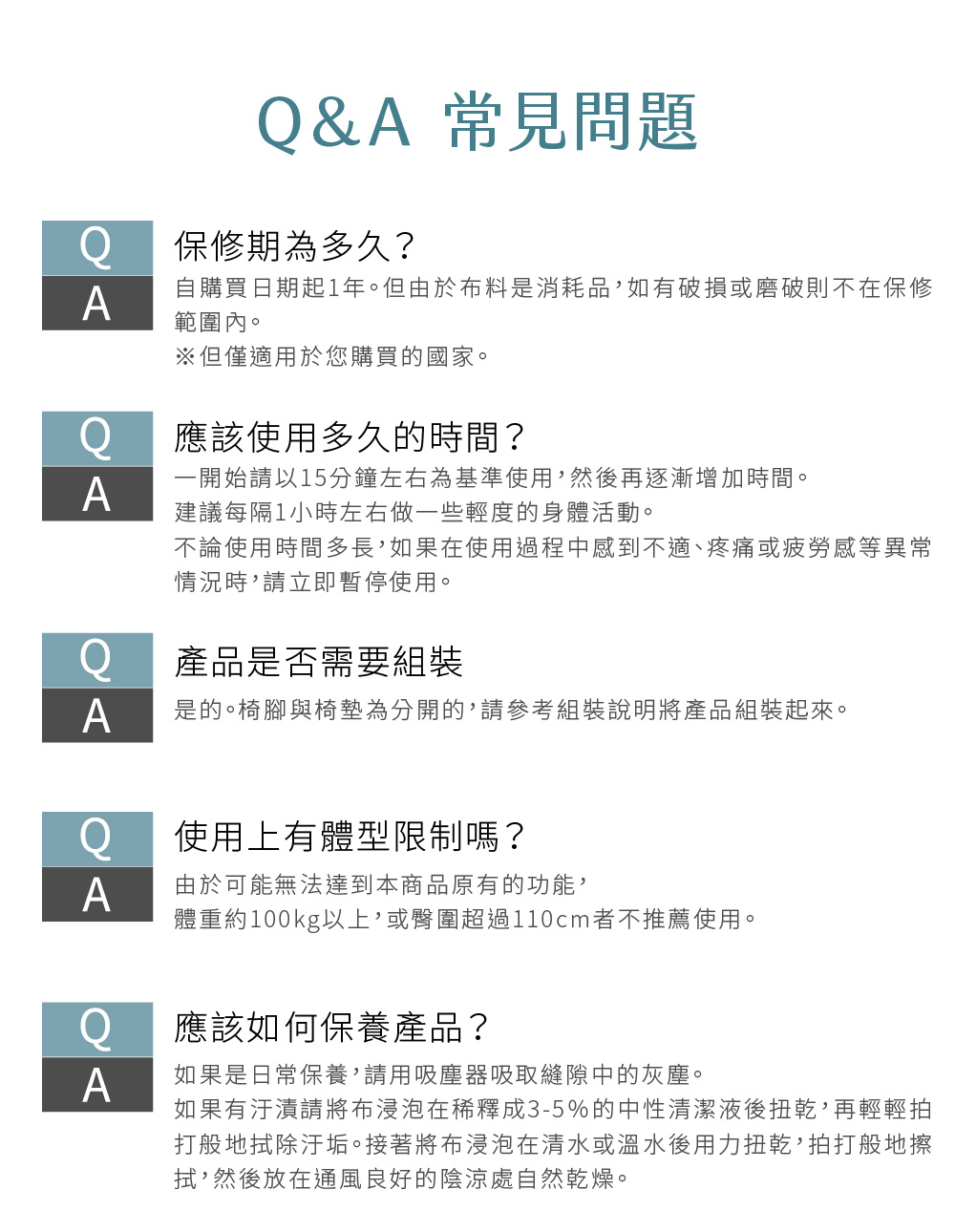 提高本產品性能,可能變更部分規格,恕不另行通知。 本產品在製造過程中,可能會出現皺痕、線痕或凹陷等, 這些都屬於正常現象。 圖片只供參考,產品的實際顏色與照片可能有所偏差。 臀圍超過110cm的人士使用,可能無法達到產品原有功效。 (非屬品質問題。)