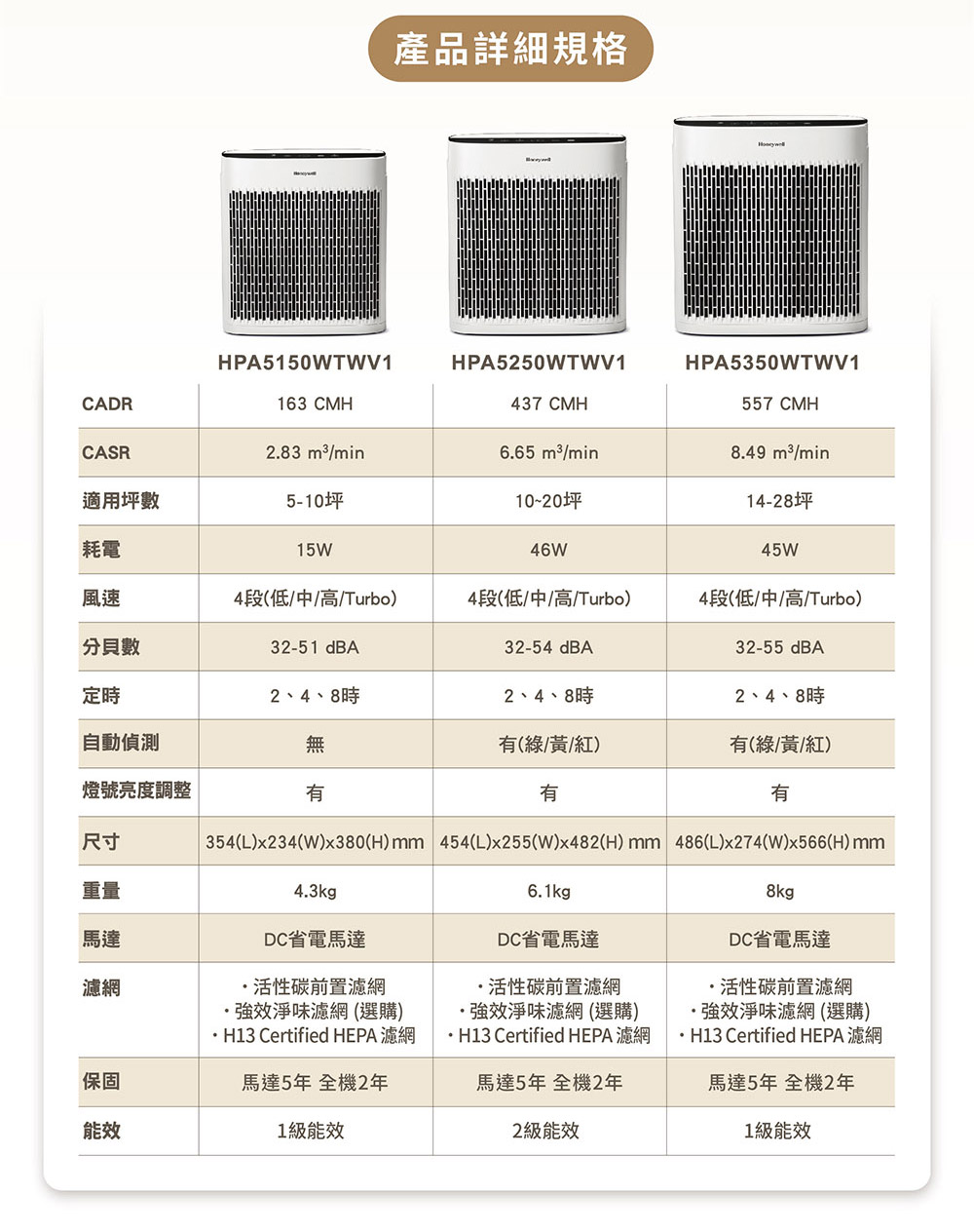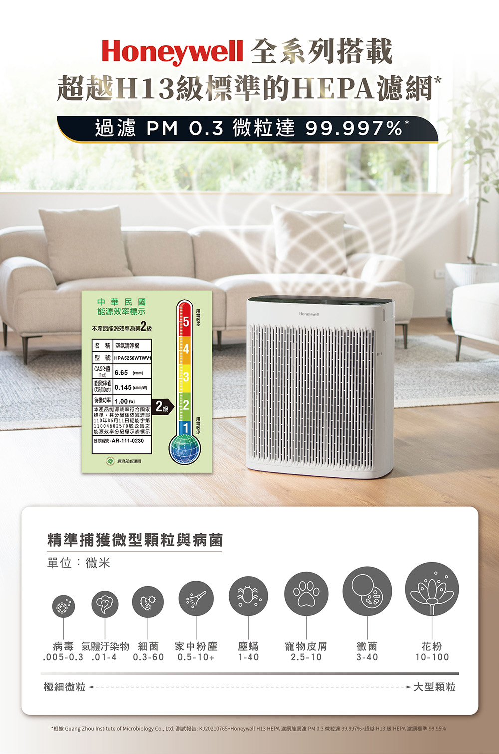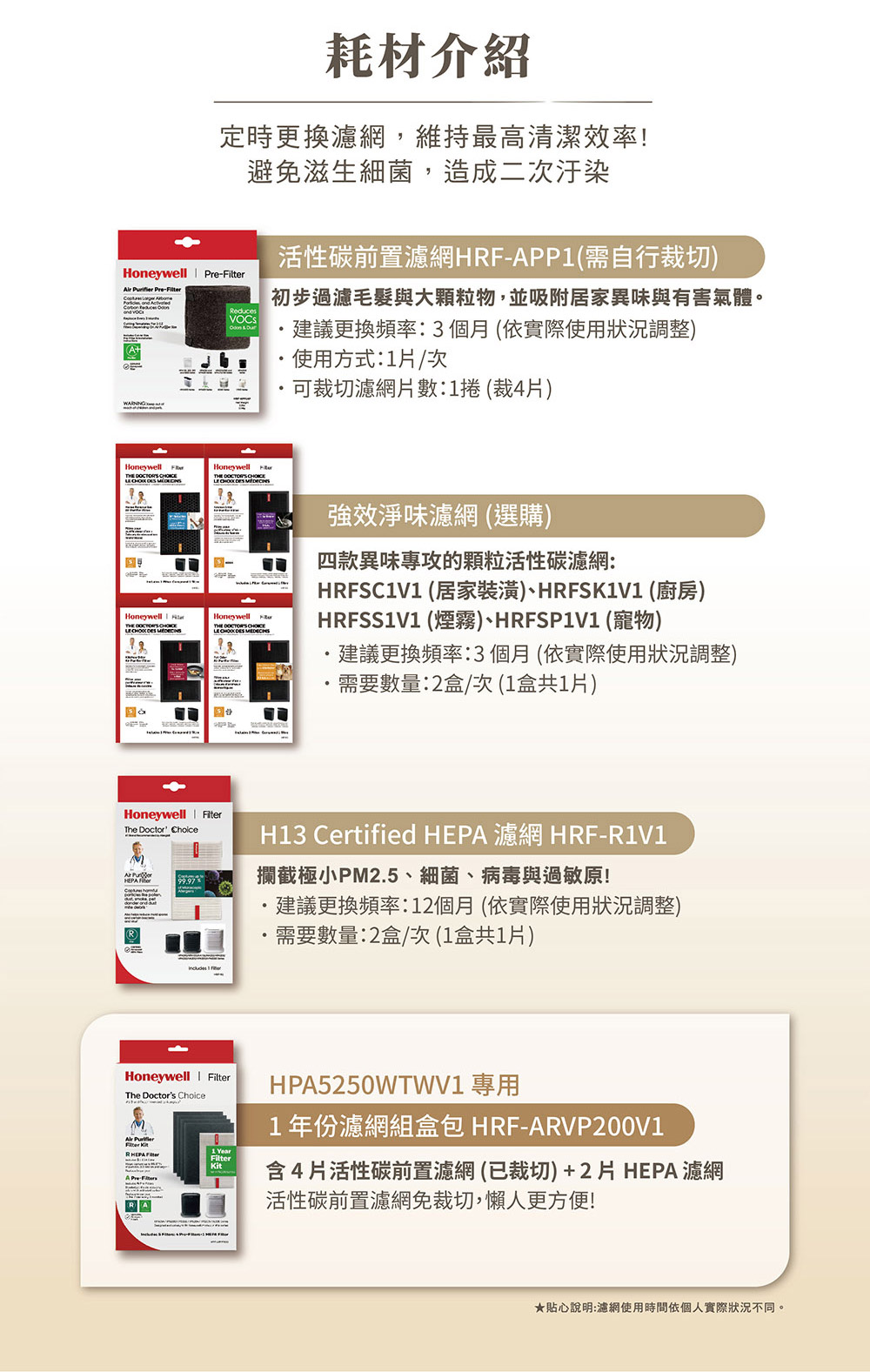 【一年份濾網組】美國Honeywell【效率等級2】 淨味空氣清淨機 HPA5250WTWV1 (適用10-20坪|小淨)