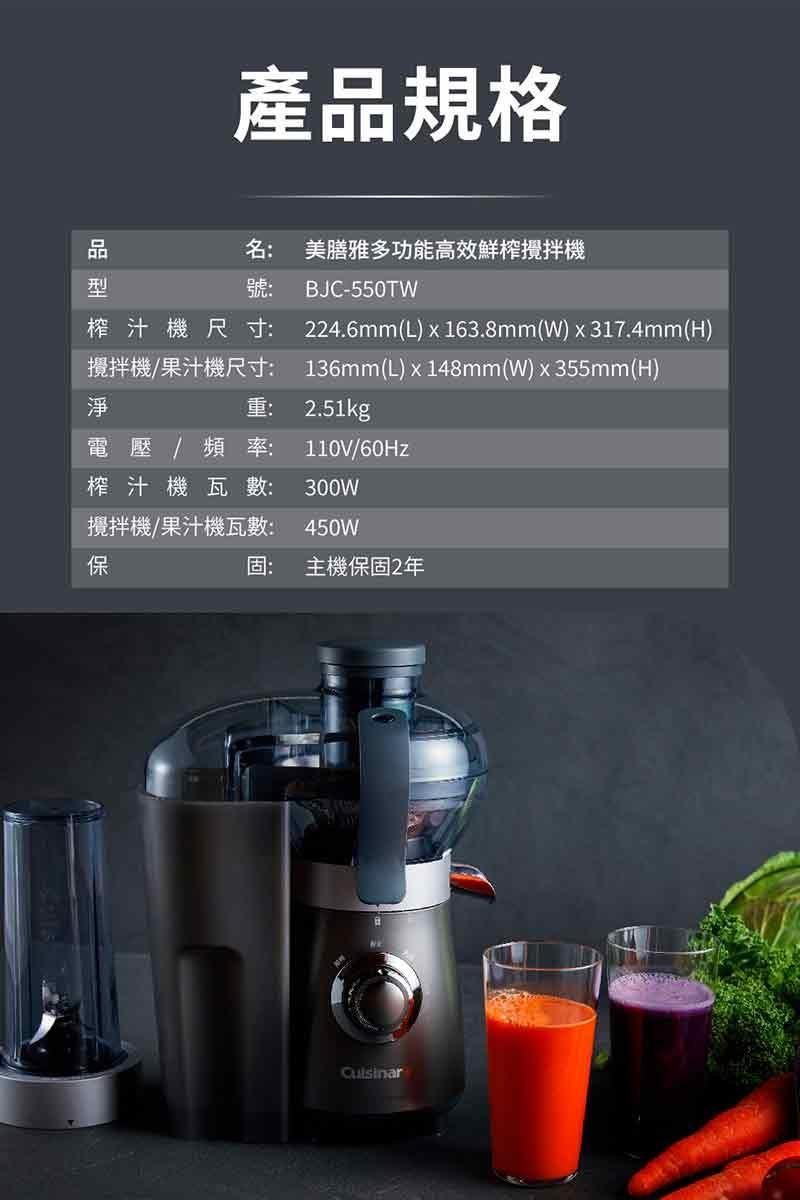 型號:美國Cuisinart美膳雅 多功能高效鮮榨攪拌機 BJC550TW
