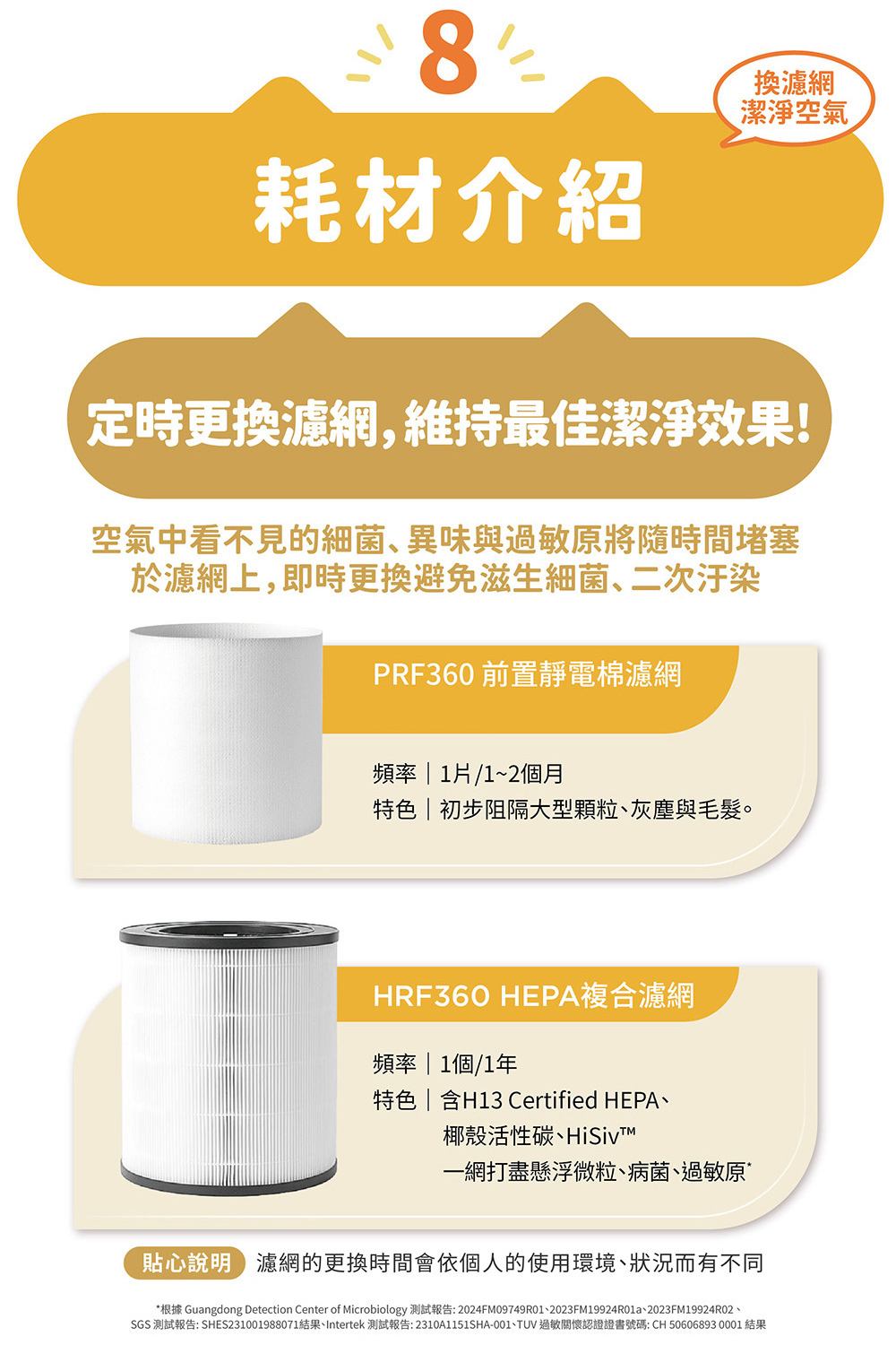 ◆通過3大國際實驗室檢測 |貓塵螨、過敏原去除率高達95%