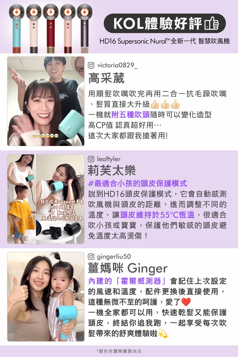 內附配件:二合一抗毛躁順髮吹嘴/柔和乾髮吹嘴/順滑吹嘴/造型集風吹嘴/捲髮烘罩/精美禮盒
