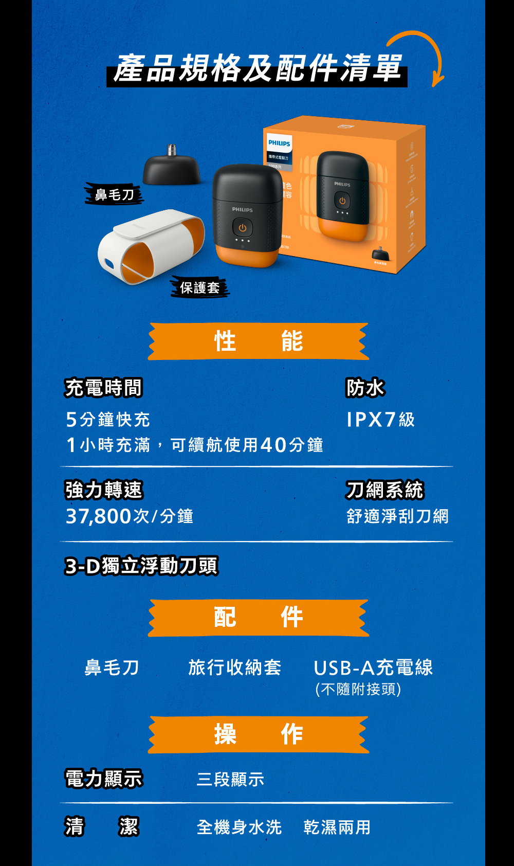 • 配件:鼻毛刀、磁吸旅行收那套、USB-A充電線