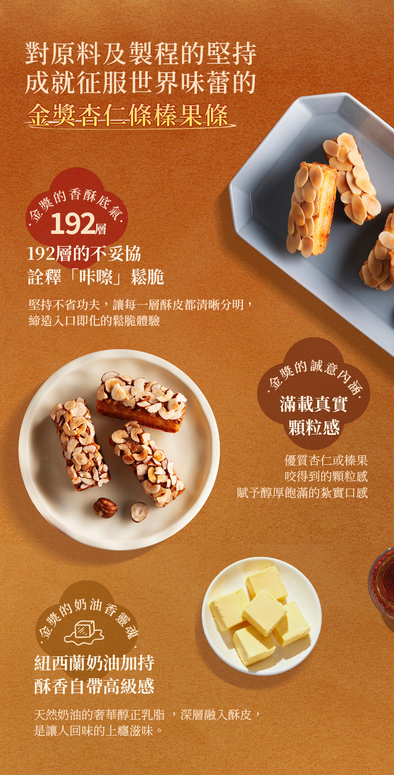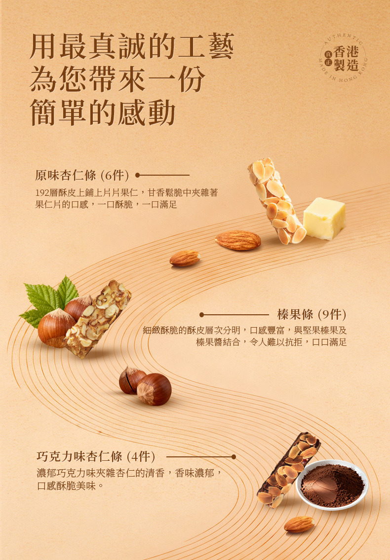 經細火烘焗後,令香濃奶油味與杏仁味完美結合,口感份外香脆。