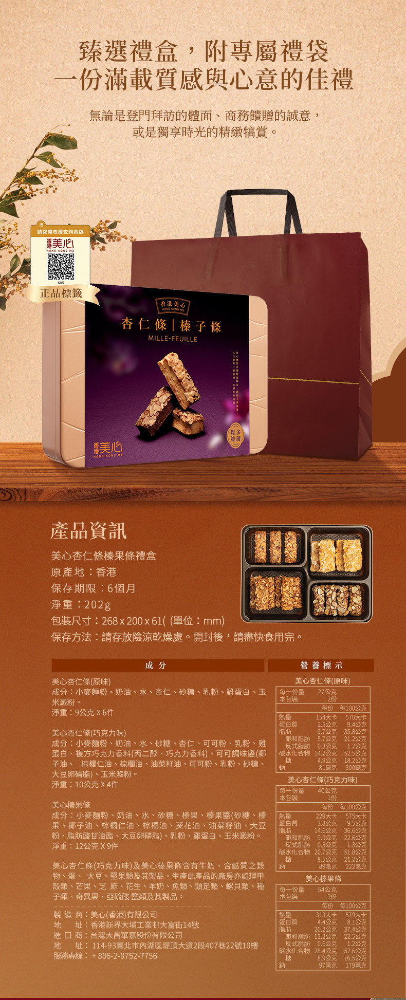 香港美心 杏仁條榛子條禮盒(19件裝)