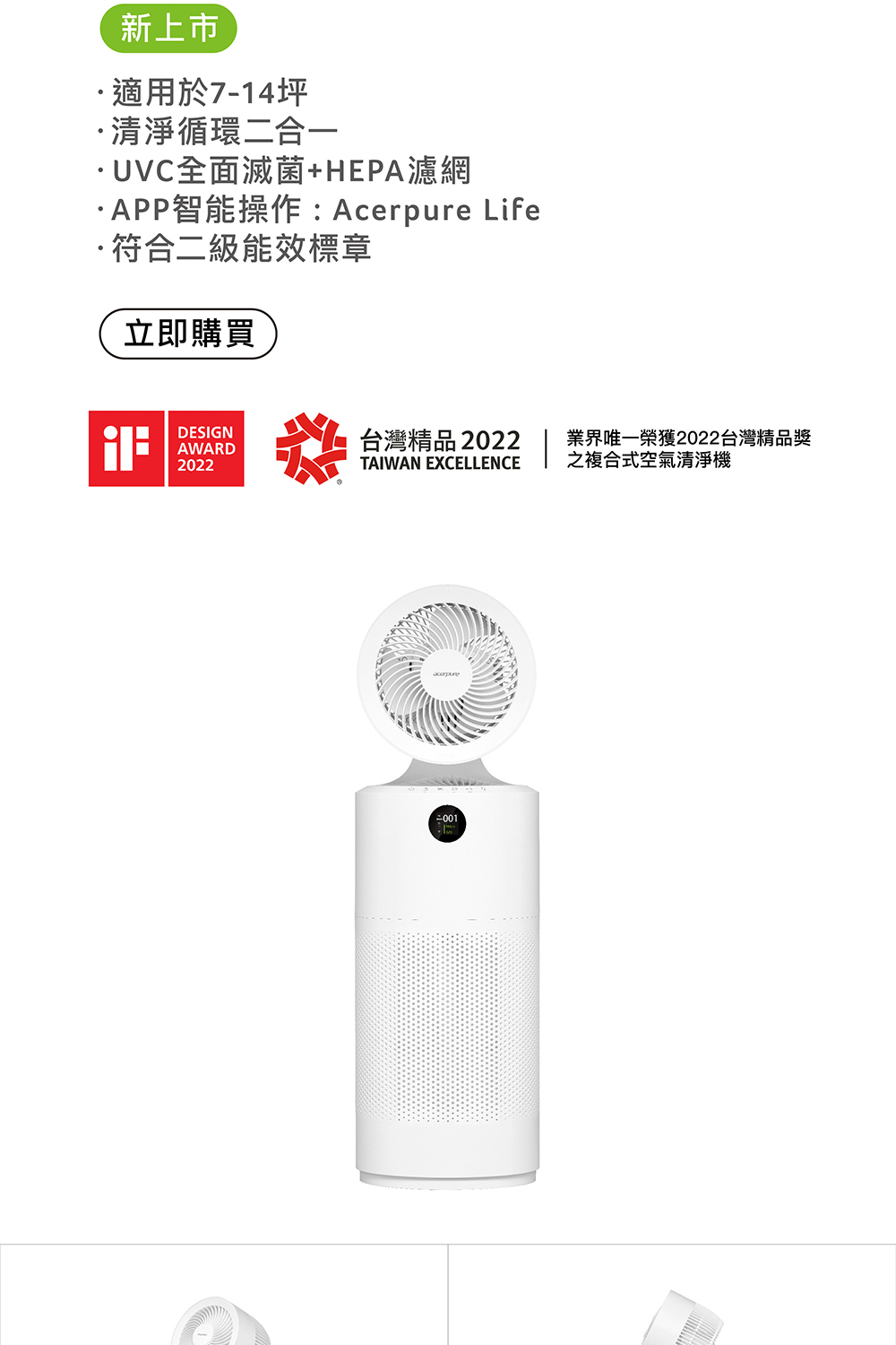 【acerpure】cool 二合一 UVC空氣循環清淨機 AC553-50W 全新升級
